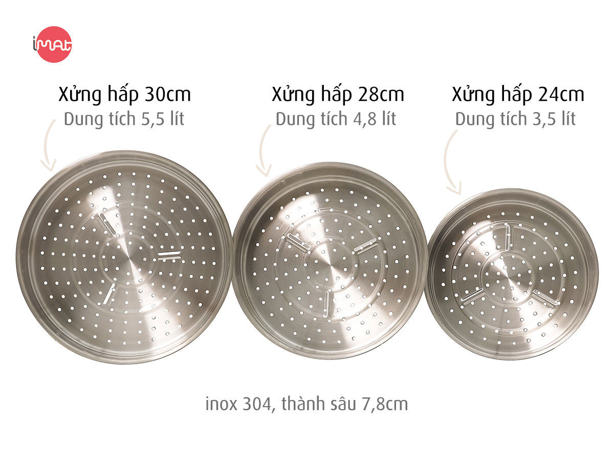 Xửng hấp iMat Inox 304 là dụng cụ nhà bếp chất lượng cao, hỗ trợ bạn chế biến các món hấp thơm ngon và bổ dưỡng. Sản phẩm được làm từ thép không gỉ Inox 304, đảm bảo an toàn thực phẩm và độ bền vượt trội.